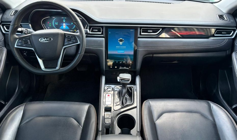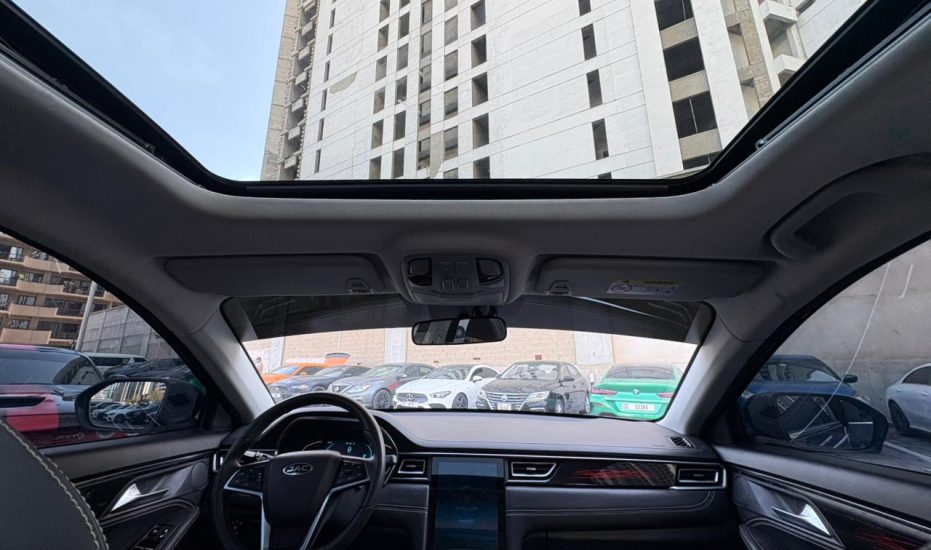 The 2024 JAC J7 in black is a sporty, value-packed liftback sedan known for its VW-influenced design, offering a blend of style, tech (10.4" screen, Apple CarPlay/Android Auto, sunroof), comfort (leather seats, spacious cabin), and safety (ABS, EBD, sensors) at an affordable price in the UAE market, powered by a 1.5L Turbo engine with an automatic CVT, perfect for daily commuting with a focus on modern features without excessive luxury.