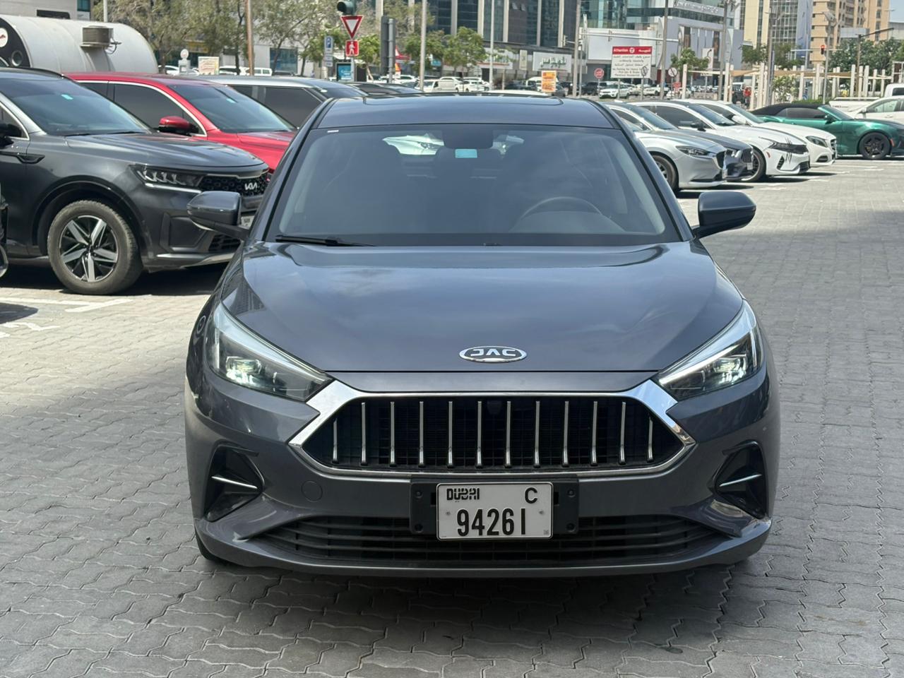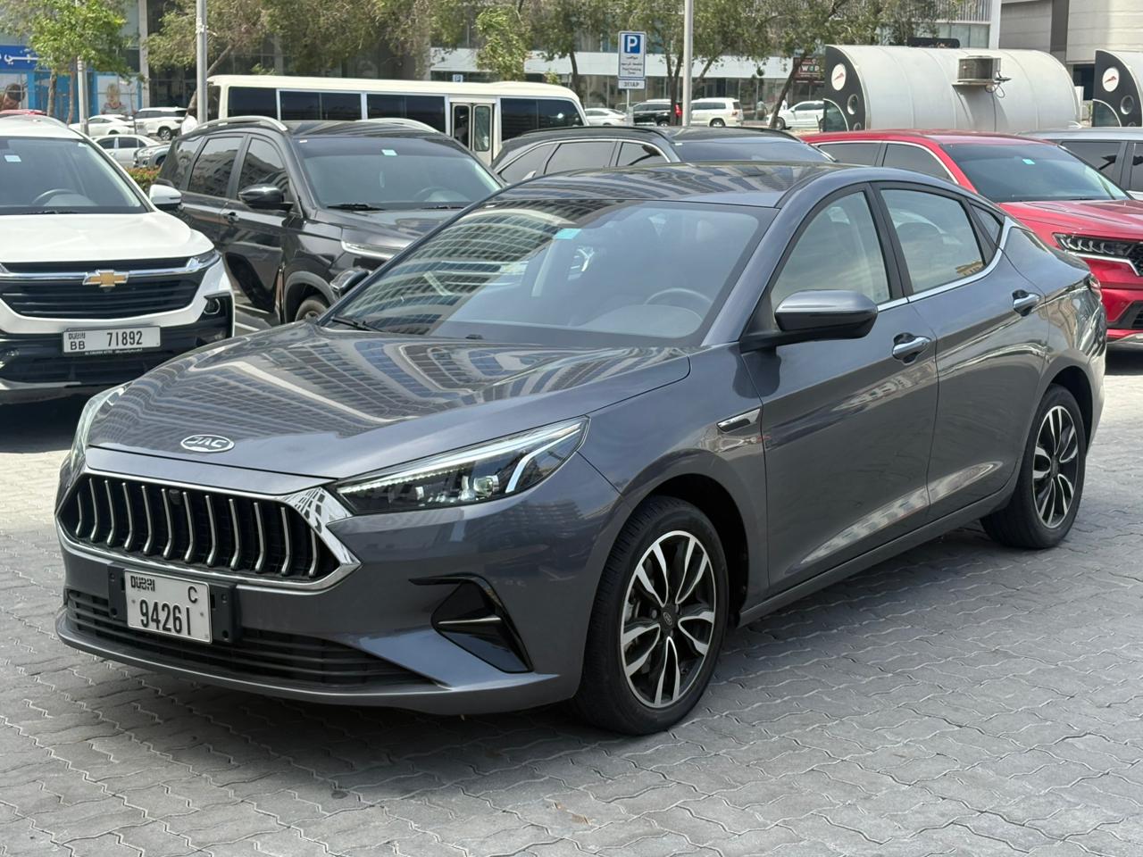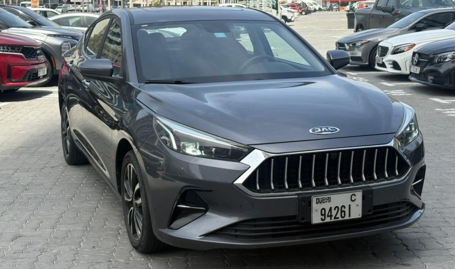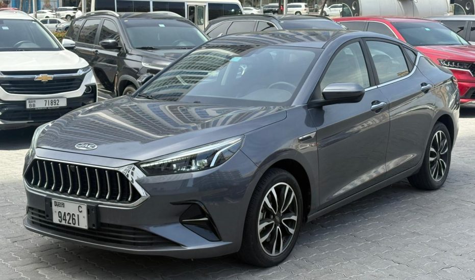 The 2024 JAC J7 in Grey is a sporty, value-packed liftback sedan known for its VW-influenced design, offering a blend of style, tech (10.4" screen, Apple CarPlay/Android Auto, sunroof), comfort (leather seats, spacious cabin), and safety (ABS, EBD, sensors) at an affordable price in the UAE market, powered by a 1.5L Turbo engine with an automatic CVT, perfect for daily commuting with a focus on modern features without excessive luxury.