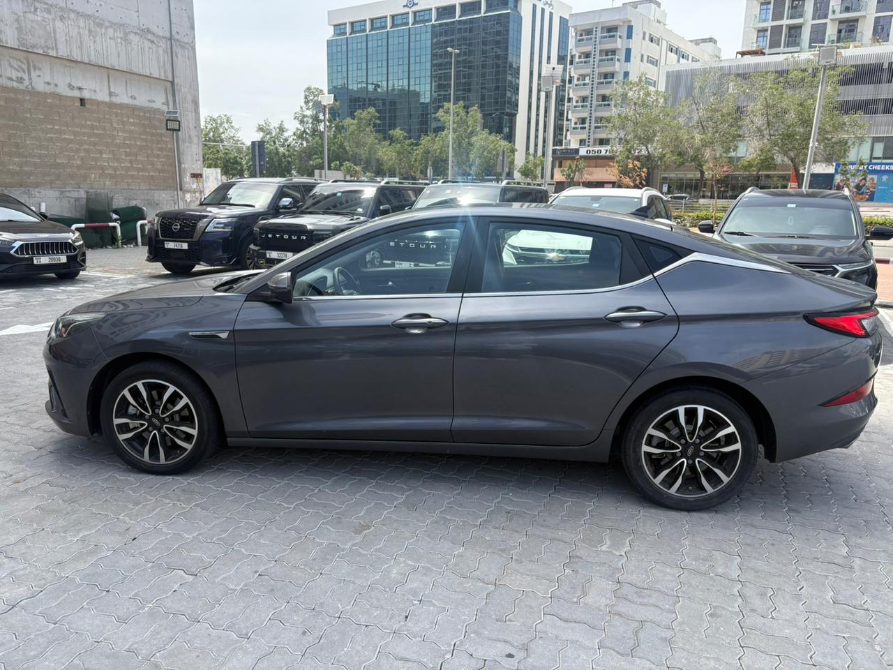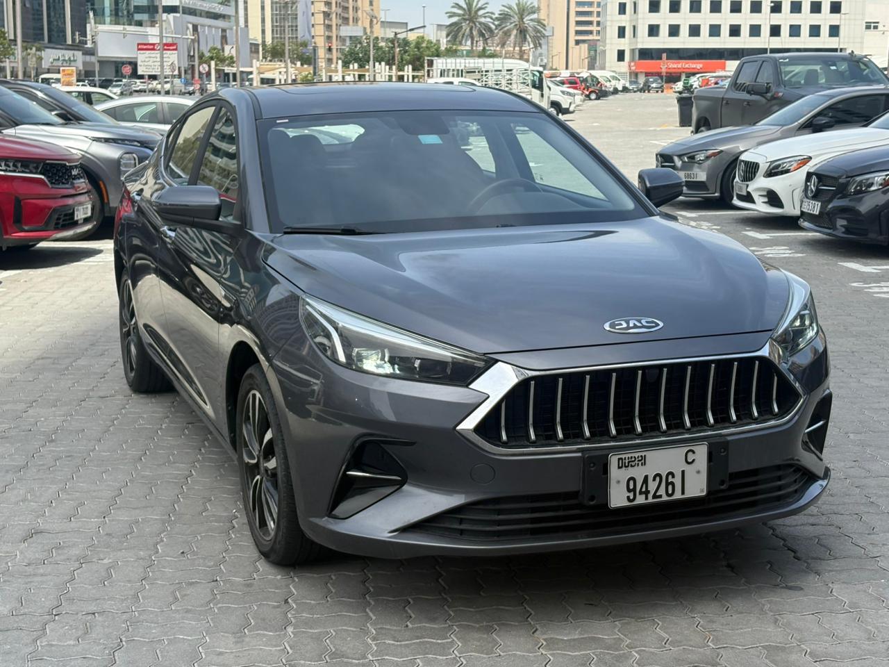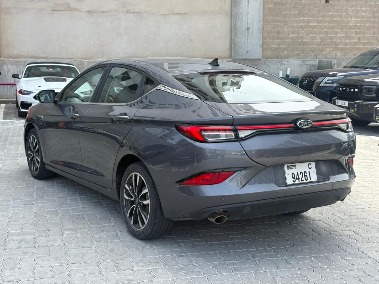 The 2024 JAC J7 in Grey is a sporty, value-packed liftback sedan known for its VW-influenced design, offering a blend of style, tech (10.4" screen, Apple CarPlay/Android Auto, sunroof), comfort (leather seats, spacious cabin), and safety (ABS, EBD, sensors) at an affordable price in the UAE market, powered by a 1.5L Turbo engine with an automatic CVT, perfect for daily commuting with a focus on modern features without excessive luxury.