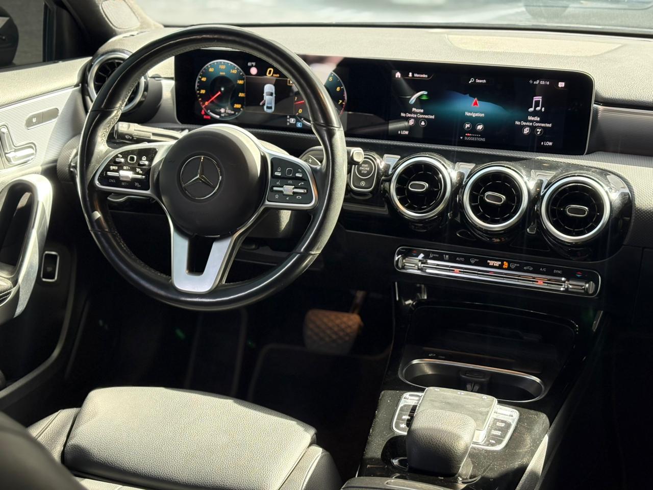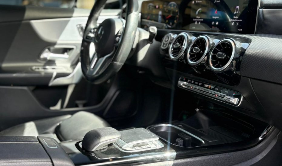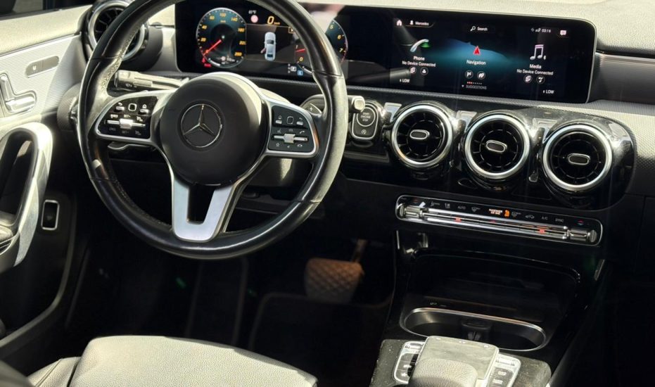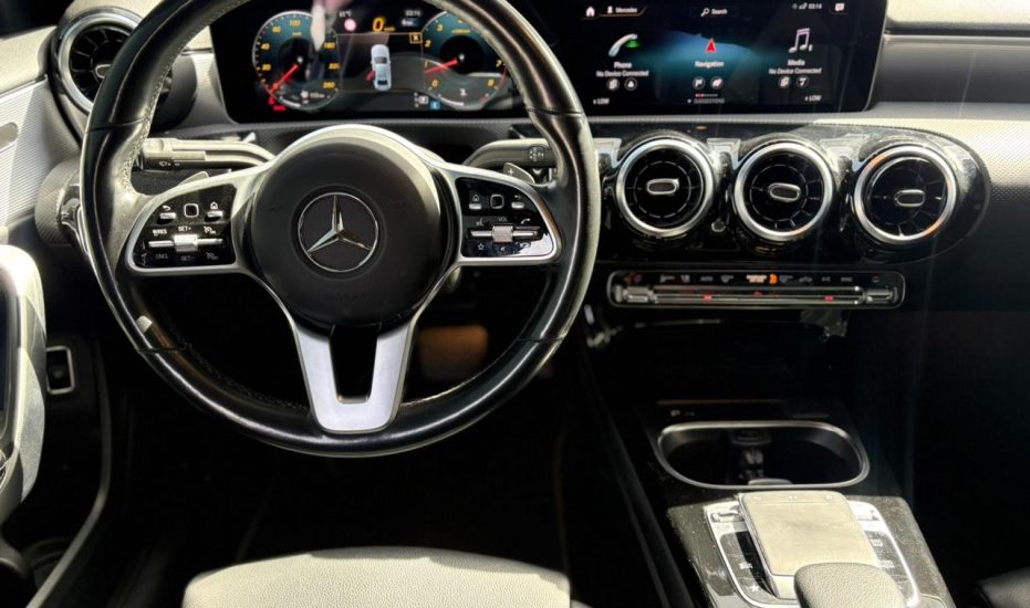 The 2020 BLACK Mercedes-Benz A 220 4MATIC is a compact luxury sedan featuring a 2.0L turbocharged 4-cylinder engine ((188text{ hp}), (221text{ lb-ft}) torque), 7-speed dual-clutch automatic transmission, and all-wheel drive. Known for a 0-60 mph time of 7.1 seconds, it offers a stylish, tech-forward interior with the MBUX infotainment system, dual 7-inch or optional 10.25-inch screens, and high-end features like 64-color ambient lighting.