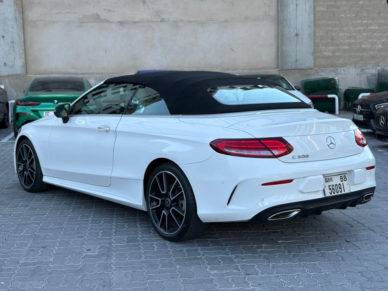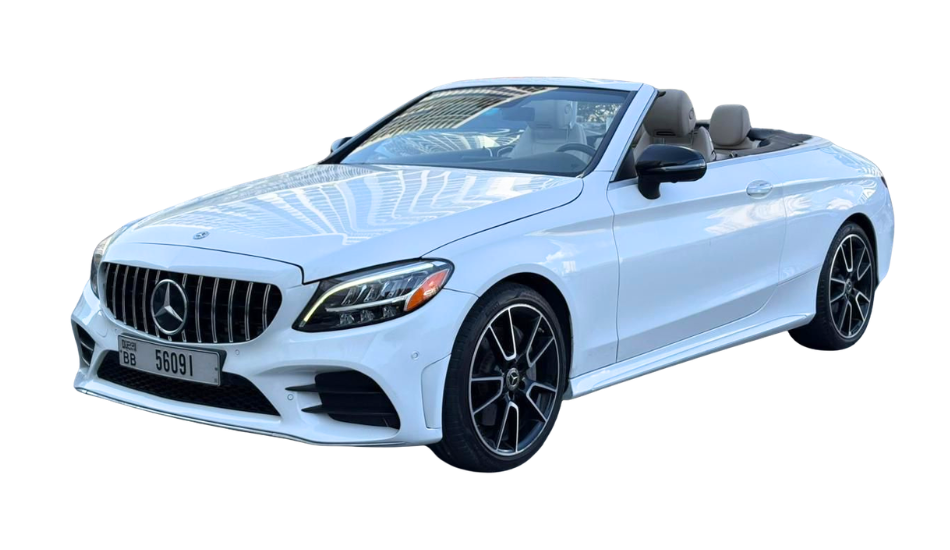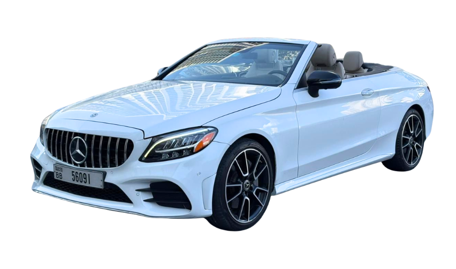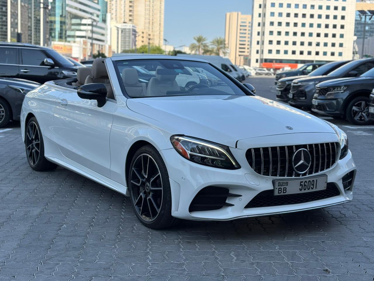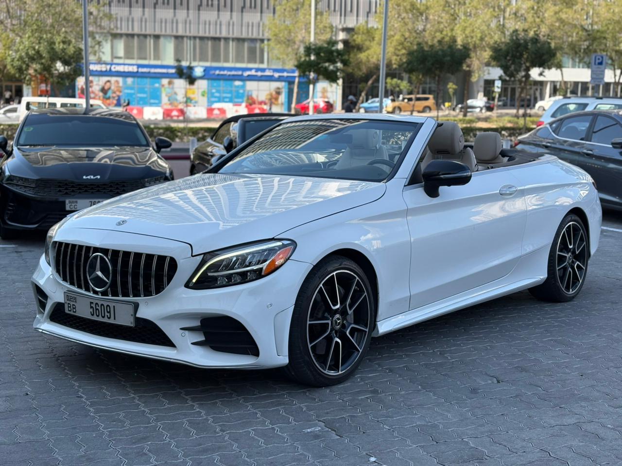 The 2022 Mercedes-Benz C300 Convertible (Cabriolet) is a stylish, 4-seat luxury drop-top featuring an elegant design, a power-operated acoustic soft top, and a 2.0L turbocharged engine producing around 255 hp, paired with a 9-speed automatic transmission and rear-wheel drive for smooth, comfortable cruising with available features like AIRCAP for wind protection and premium interior finishes.