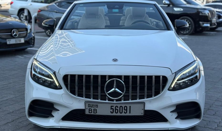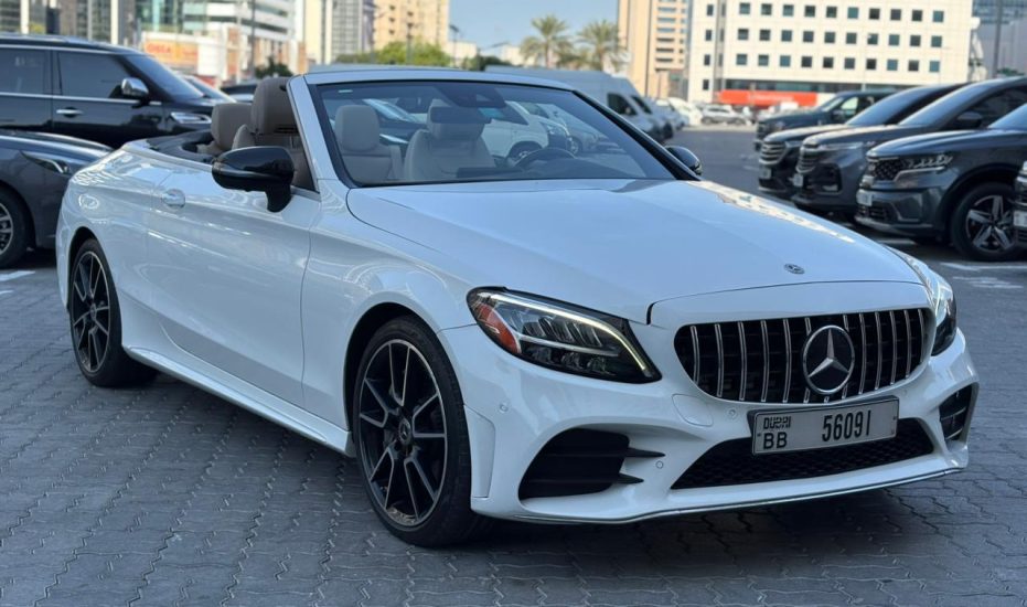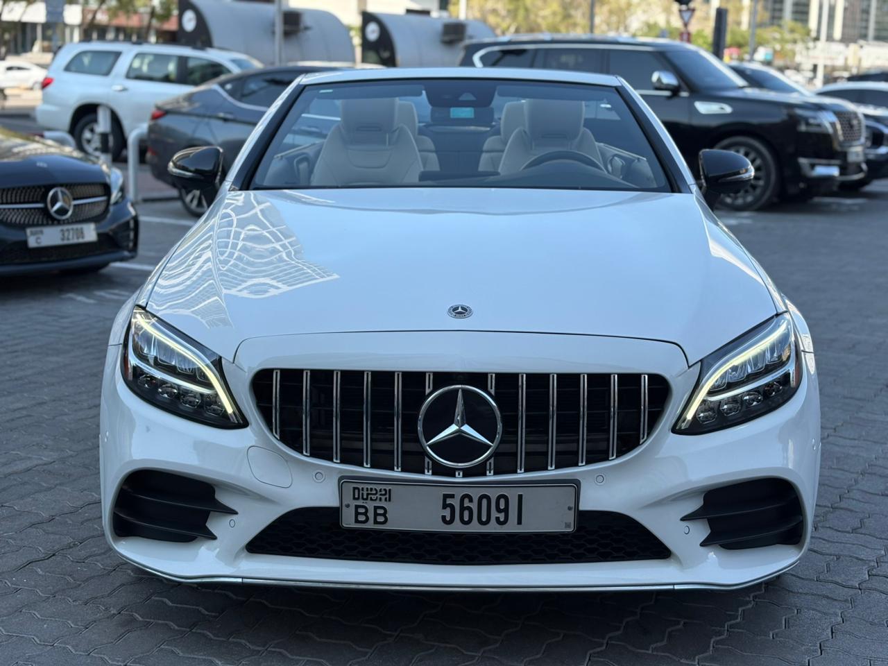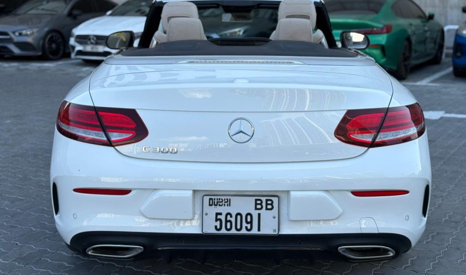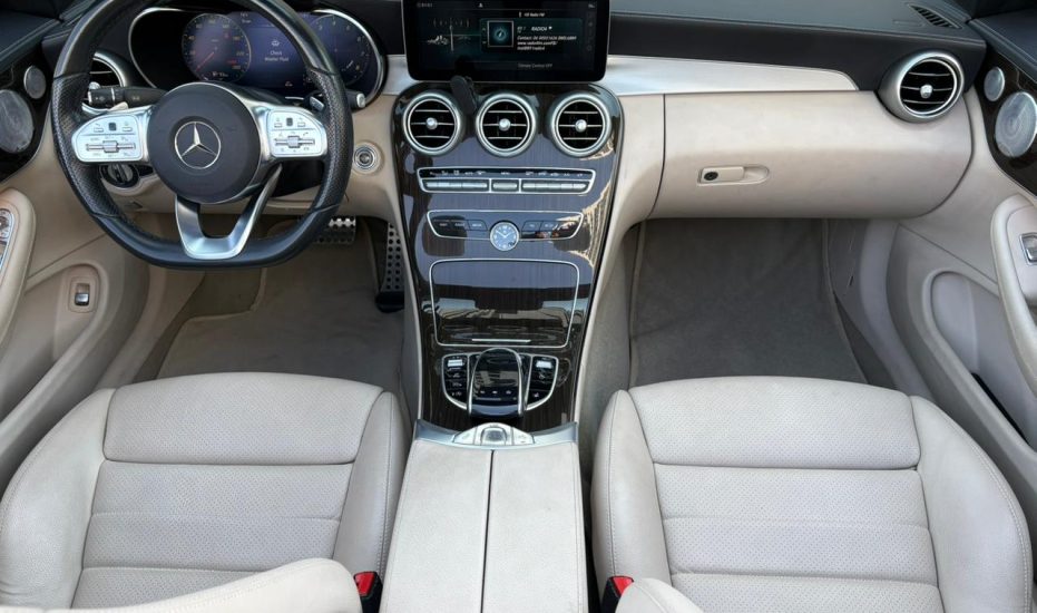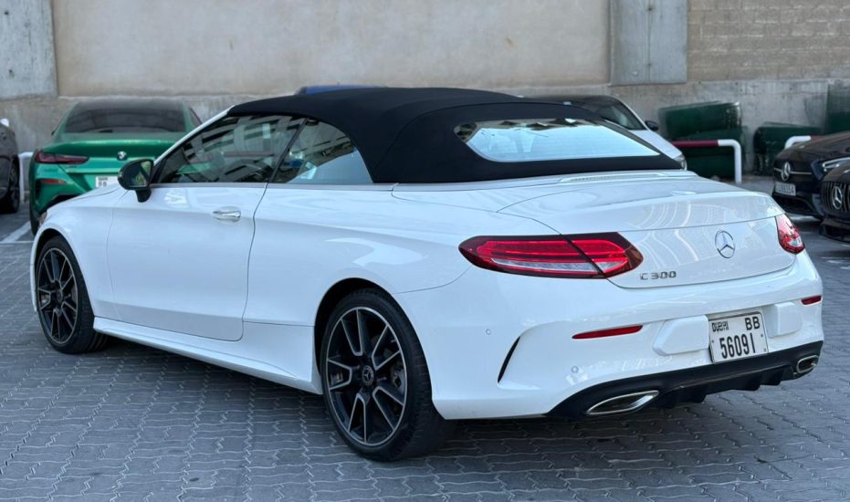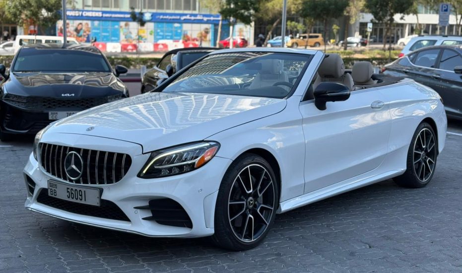 The 2022 Mercedes-Benz C300 Convertible (Cabriolet) is a stylish, 4-seat luxury drop-top featuring an elegant design, a power-operated acoustic soft top, and a 2.0L turbocharged engine producing around 255 hp, paired with a 9-speed automatic transmission and rear-wheel drive for smooth, comfortable cruising with available features like AIRCAP for wind protection and premium interior finishes.