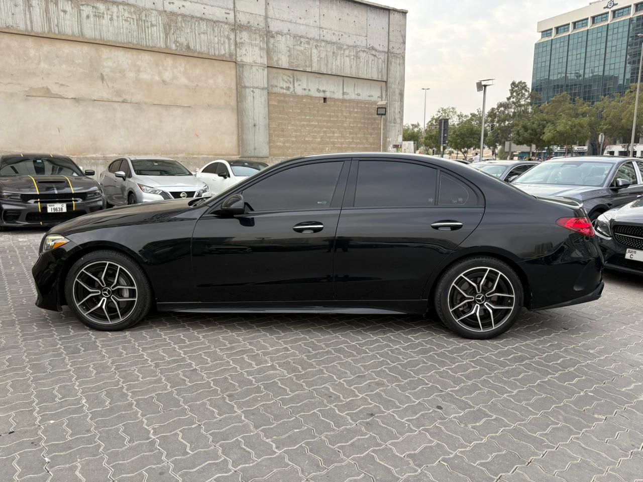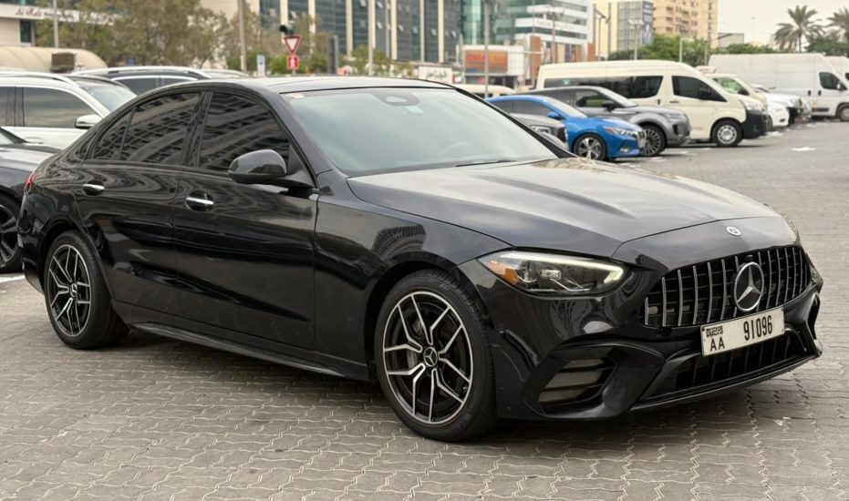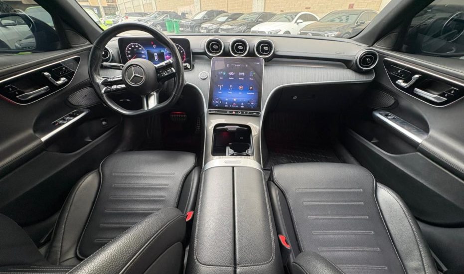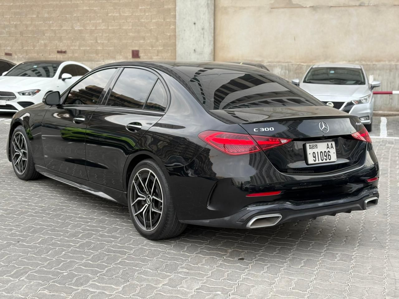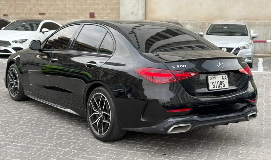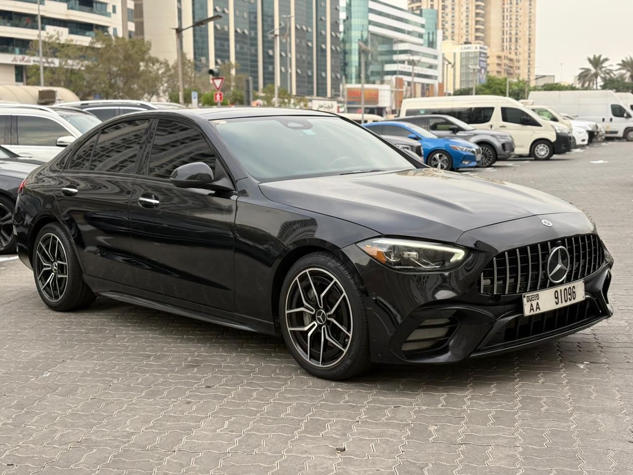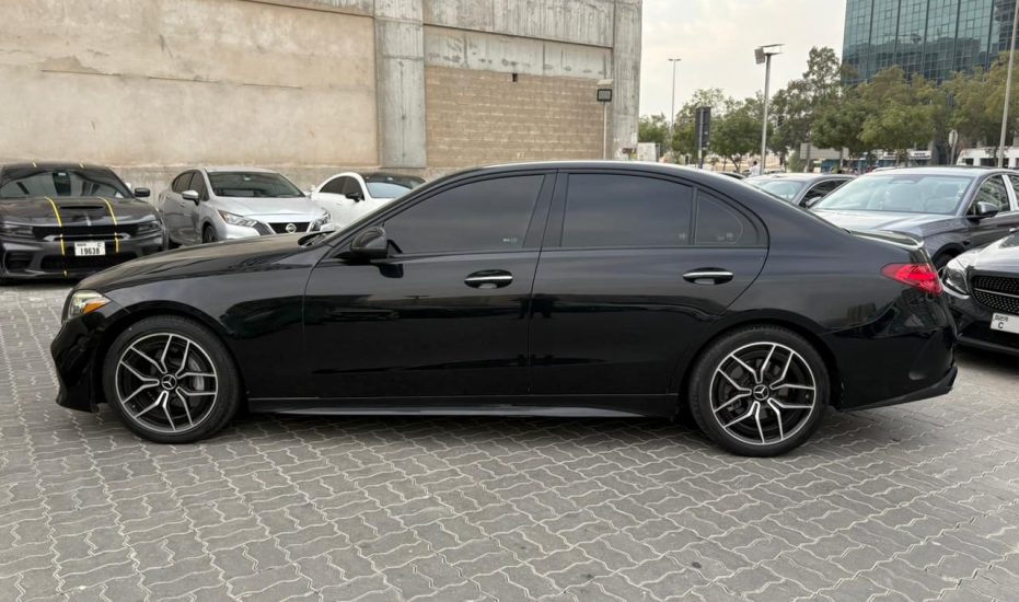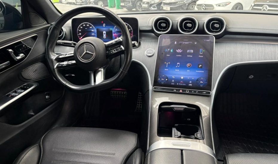 The 2023 Mercedes-Benz C 300 4MATIC is a luxurious, tech-forward sedan featuring a 255-hp 2.0L turbo four-cylinder engine with a 48-volt mild hybrid system. It includes standard 4MATIC all-wheel drive, a 9-speed automatic transmission, a redesigned cabin with a 12.3-inch digital gauge cluster, and an 11.9-inch center touchscreen.