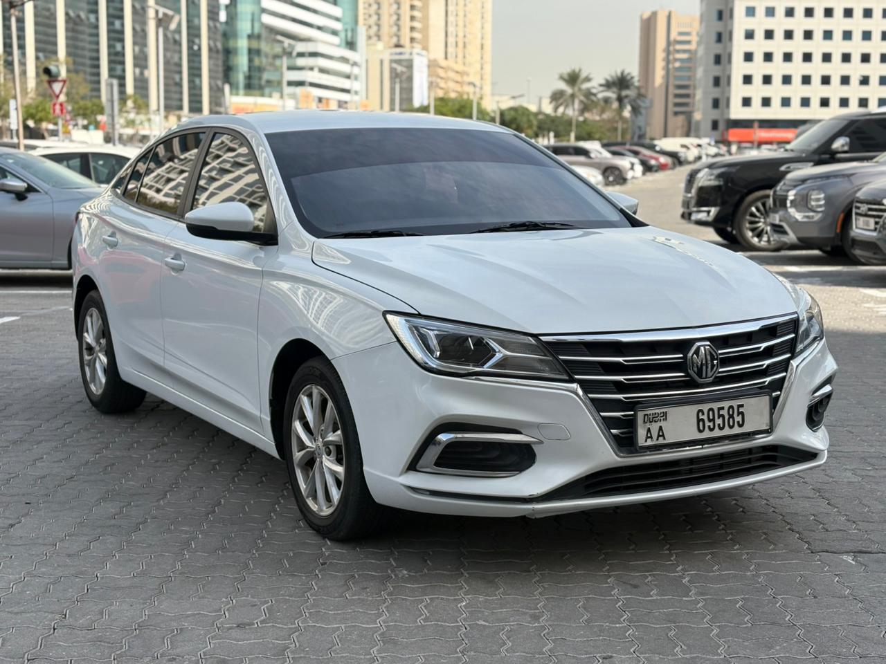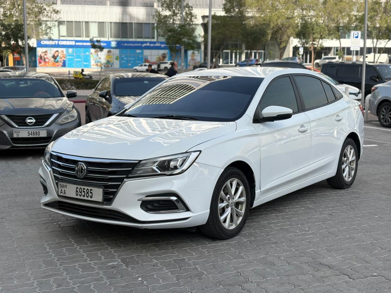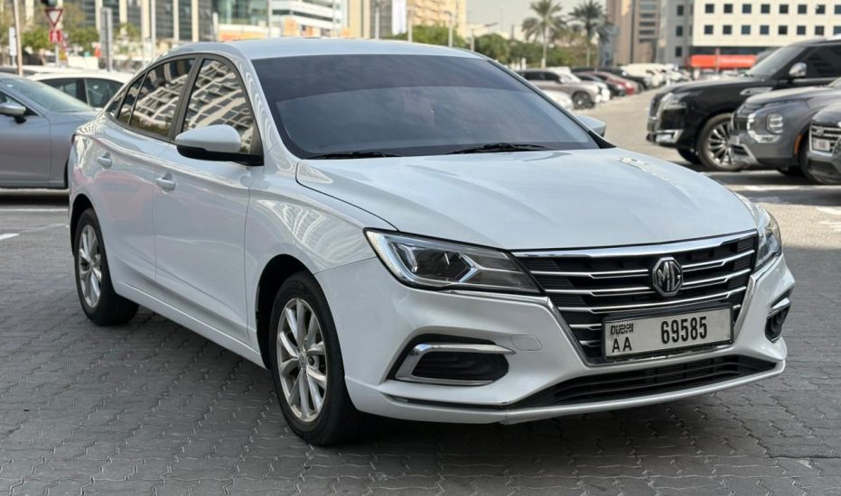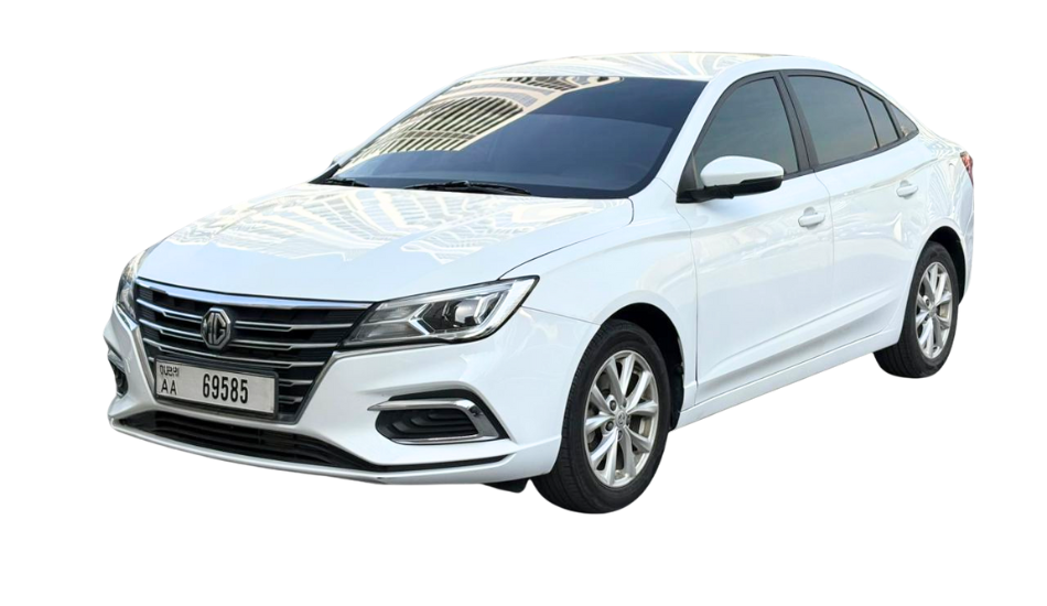 The 2024 MG 5 white is a stylish, affordable compact sedan known for its sporty design, modern tech like large touchscreens (10.25-inch infotainment, 12.3-inch digital cluster) with Apple CarPlay/Android Auto, and surprisingly good comfort for its class, offering a 1.5L engine with CVT for efficient city driving, advanced safety features (often 5-star rated), and a well-balanced ride, competing with cars like the Honda City and Toyota Vios in markets like the UAE.