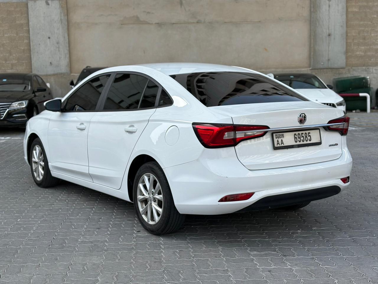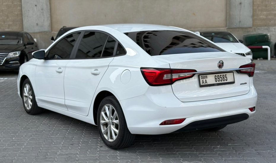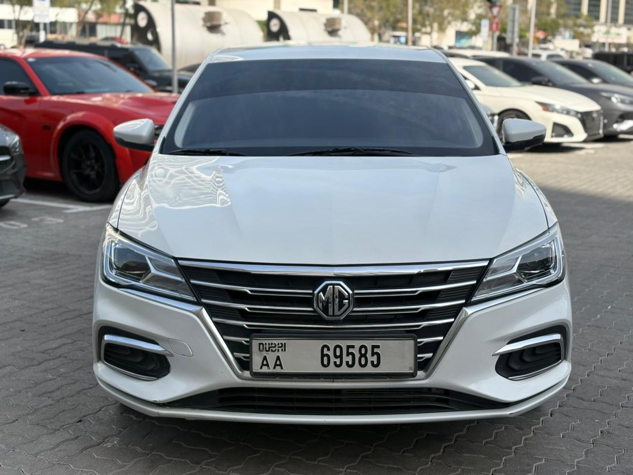 The 2024 MG 5 white is a stylish, affordable compact sedan known for its sporty design, modern tech like large touchscreens (10.25-inch infotainment, 12.3-inch digital cluster) with Apple CarPlay/Android Auto, and surprisingly good comfort for its class, offering a 1.5L engine with CVT for efficient city driving, advanced safety features (often 5-star rated), and a well-balanced ride, competing with cars like the Honda City and Toyota Vios in markets like the UAE.