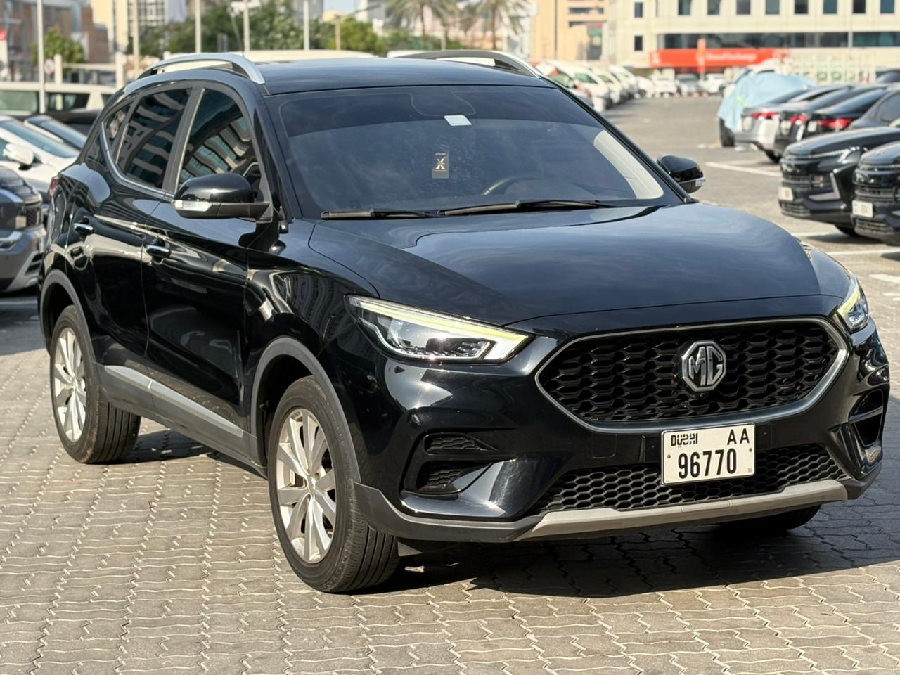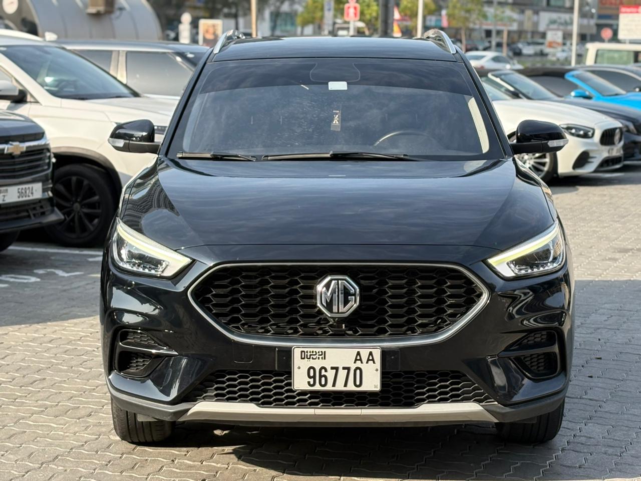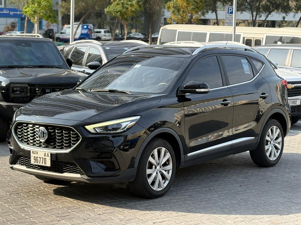 The 2024 MG ZS (GCC specs) is a compact 5-seater SUV featuring a 1.5L engine (112–118 HP, 150 Nm) with a CVT transmission, designed for city efficiency. It is known for its high ground clearance, 17-inch wheels, 12.3-inch touchscreen, and Apple CarPlay/Android Auto. Safety includes ABD (Anti-lock Brake System), rear cameras, and optional ADAS.