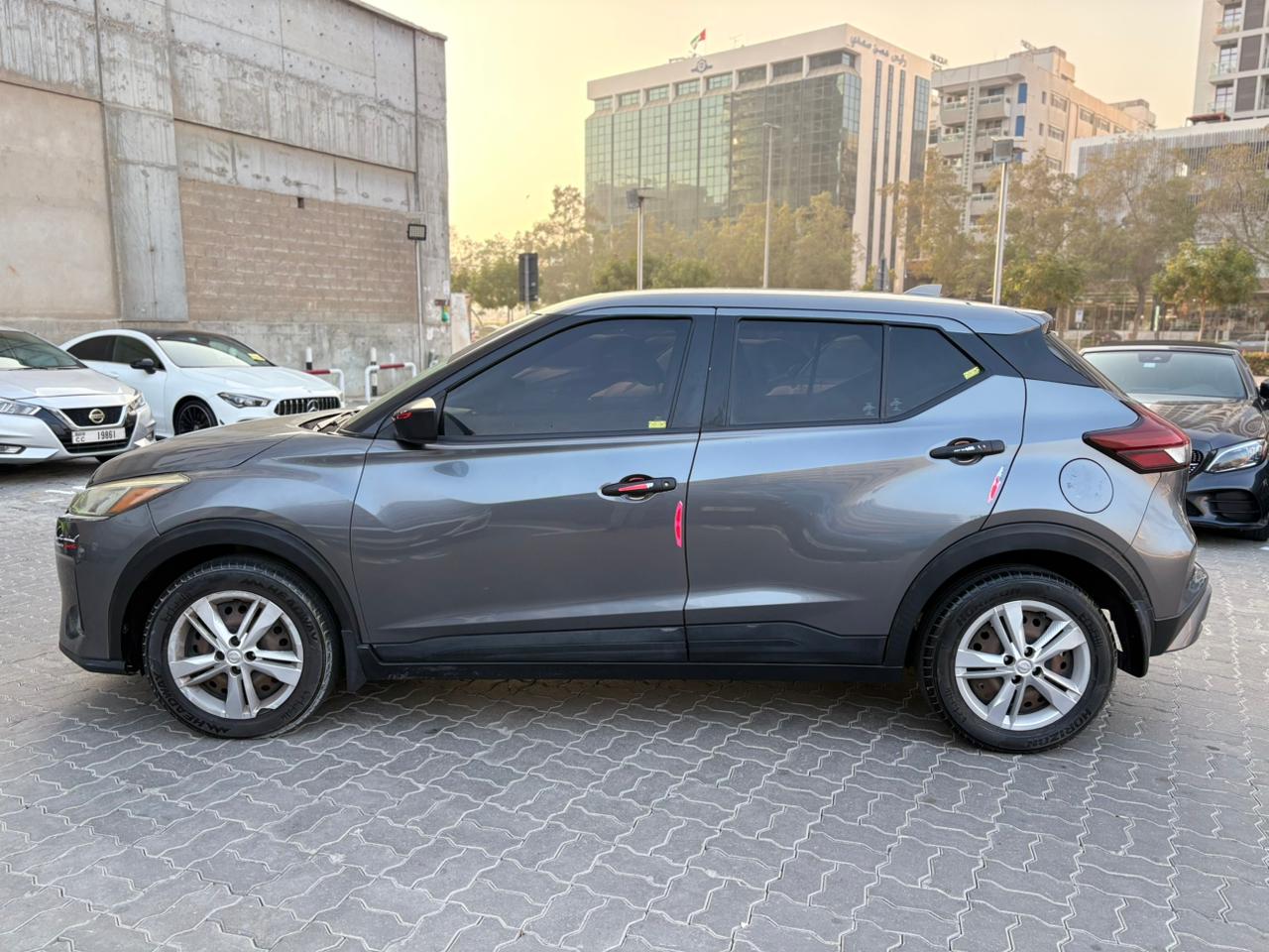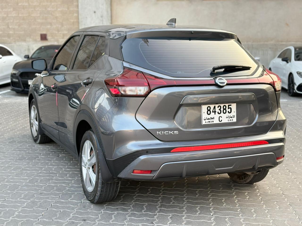 The 2021 Nissan Kicks, especially in a blue shade like Electric Grey Metallic, is a stylish, fuel-efficient subcompact crossover known for its expressive design (new grille, floating roof), tech (standard Apple CarPlay/Android Auto, available 8-inch touchscreen, Bose audio), and safety (Nissan Safety Shield 360 standard). It offers agile city driving with its 1.6L engine, Xtronic CVT, and comfortable Zero Gravity seats, making it a value-packed option for personalization and everyday use.