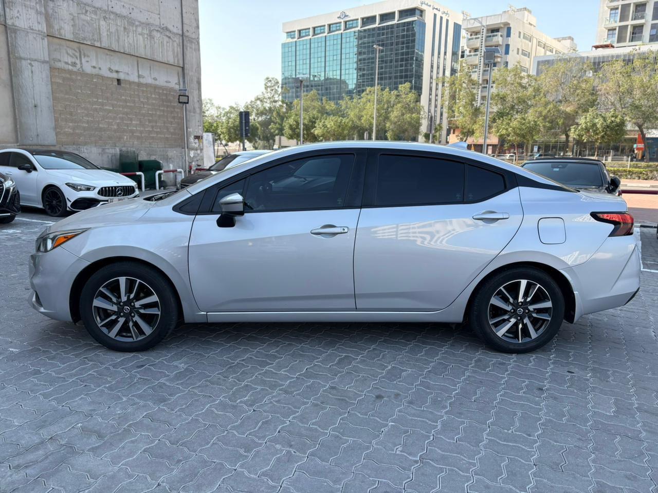 The 2021 Nissan Versa SV is a subcompact sedan focused on efficiency and technology, boasting a 1.6L 122 HP engine, CVT transmission, and including Apple CarPlay, Android Auto, a 7" touchscreen, cruise control, and advanced safety features such as automatic emergency braking and blind spot alert, offering a good balance between economy and comfort for everyday use.